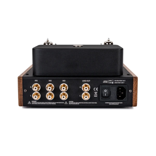 Connectique : 3x entrée RCA stéréo / 1x sortie RCA stéréo (pré-out pour amplificateur intégré ou enceintes actives) / 1x sortie casque asymétrique jack 6.35 mm