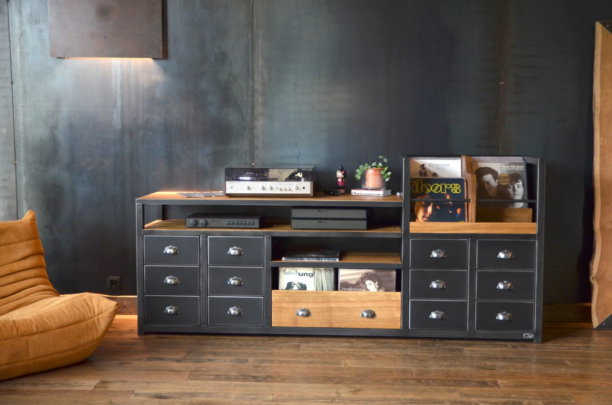 Meuble hifi audiophile, avec bac disquaire, 100% Made In France